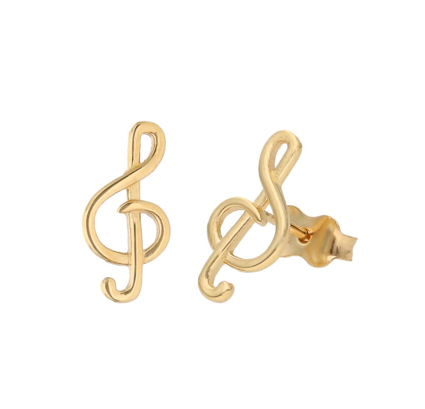 | Opis produktu | Złote kolczyki o kształcie klucza wiolinowego. Zapięcie typu sztyft. |
