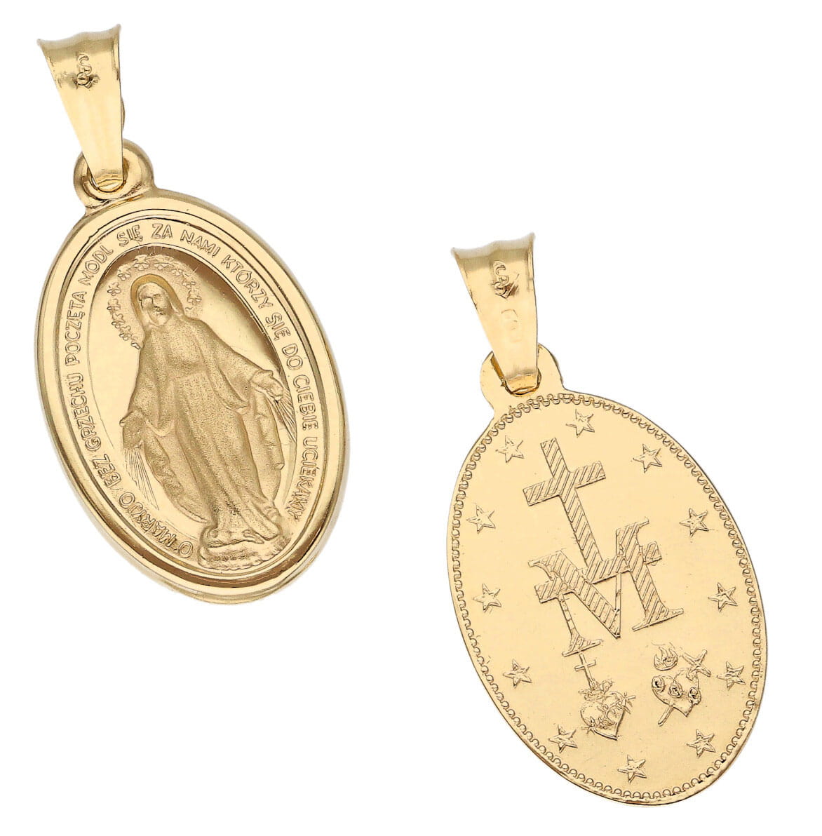 | Opis produktu | Złoty polski medalik z postacią Matki Najświętszej. |