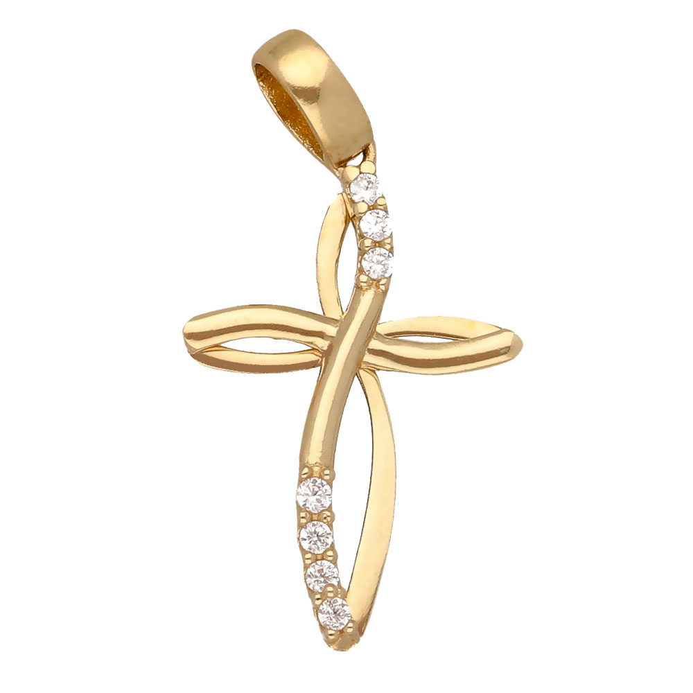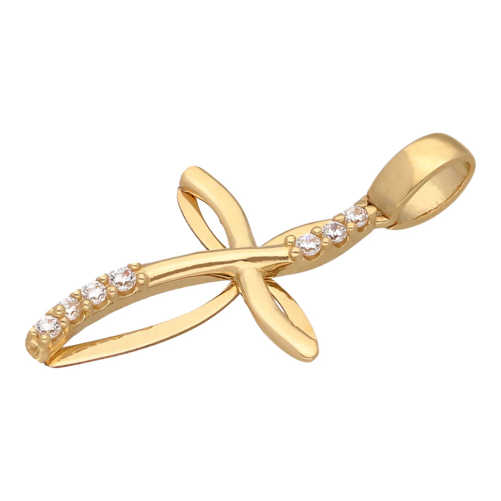 Zawieszka Złota - Fantazyjny Krzyżyk z Białą Cyrkonią