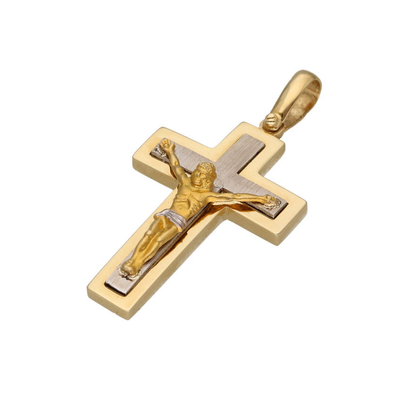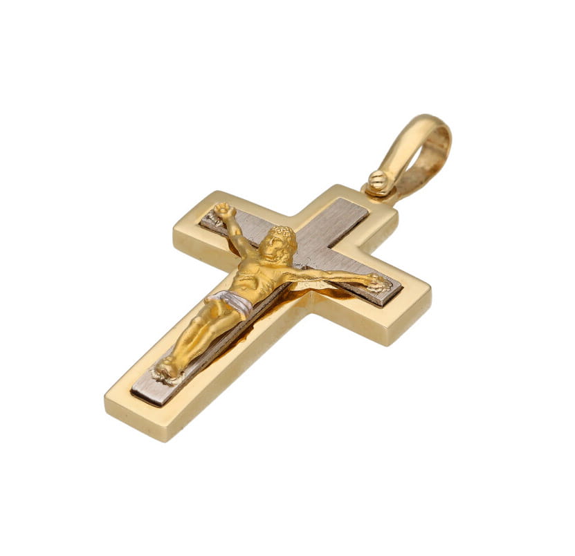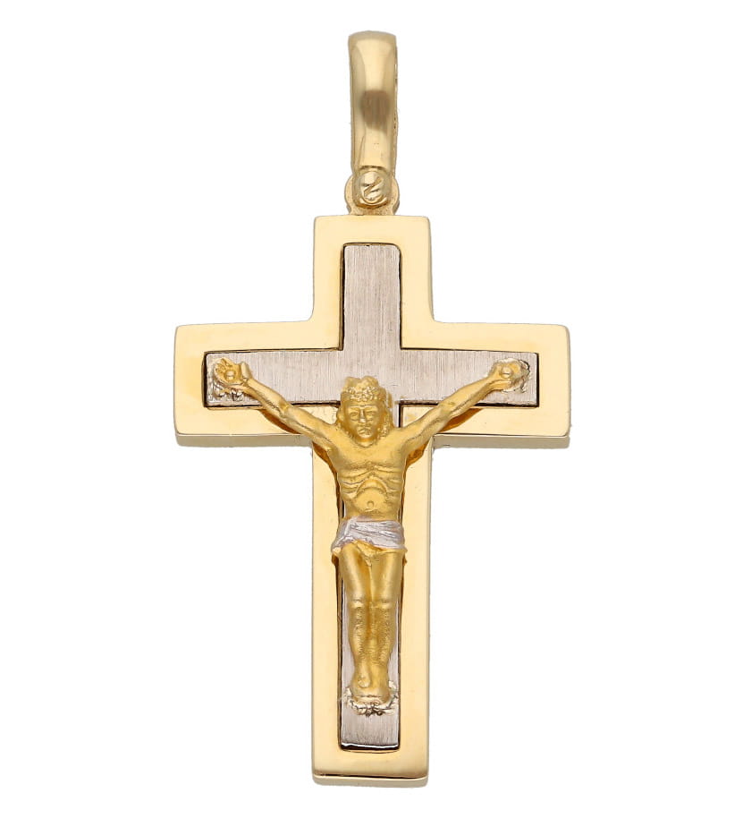 | Opis produktu | Złota zawieszka w kształcie krzyża z Jezusem w kolorze żółtego i białego złota. Idealny prezent dla chłopca czy mężczyzny. |