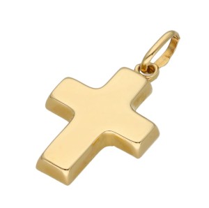 | Opis produktu | Złota dmuchana zawieszka o kształcie gładkiego wypukłego krzyżyka. |