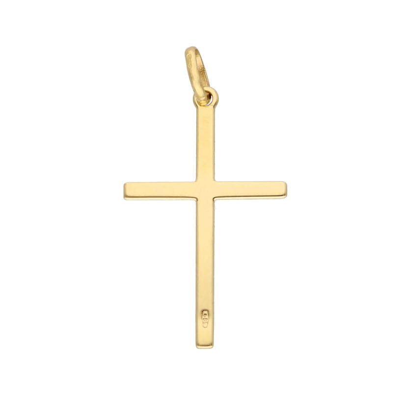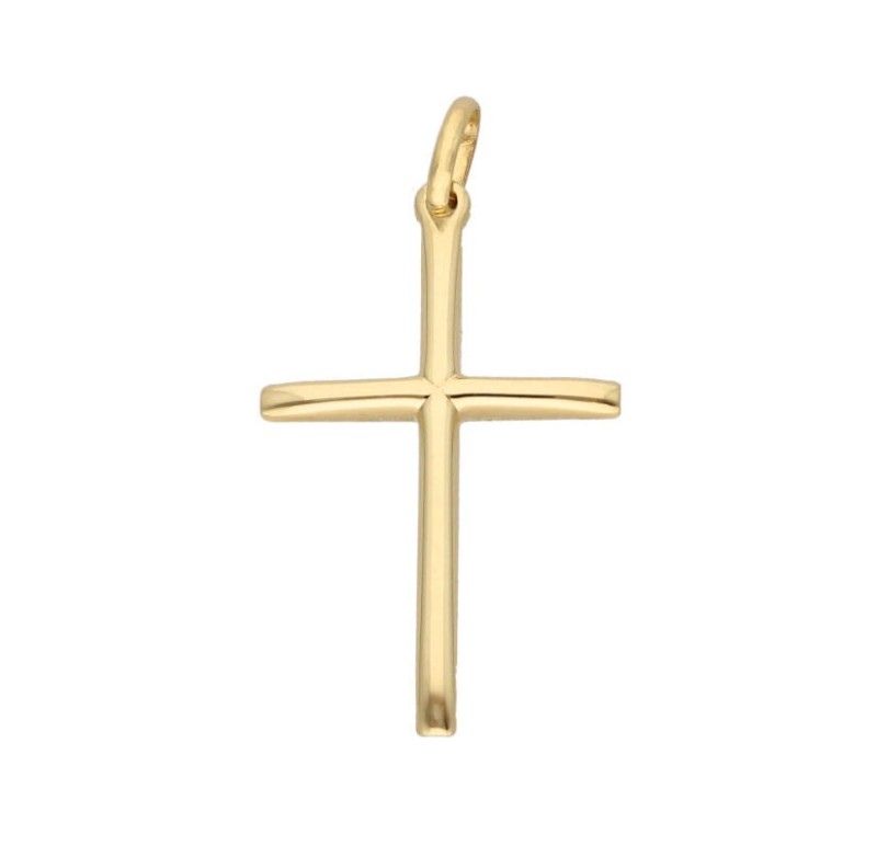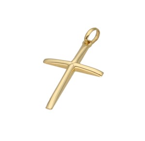 | Opis produktu | Złota zawieszka o kształcie gładkiego lekko wypukłego krzyżyka. |