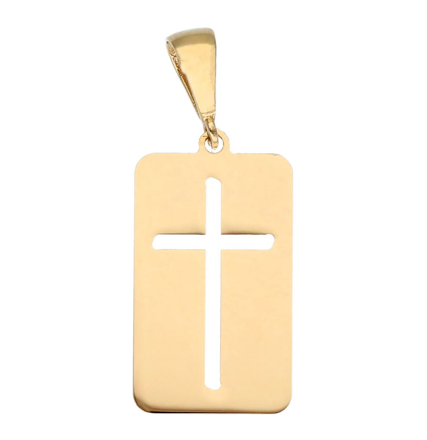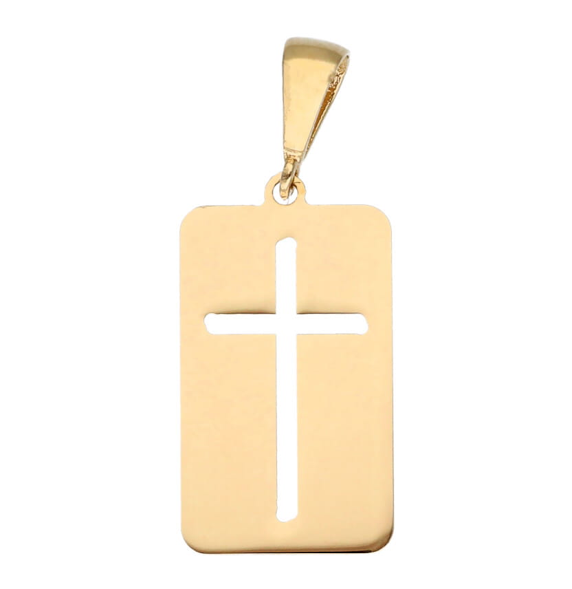 | Opis produktu | Złota zawieszka - blaszka z wyciętym krzyżykiem. |