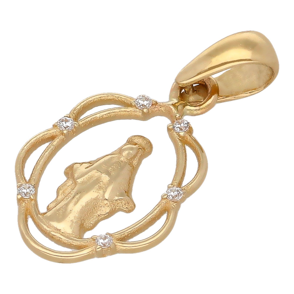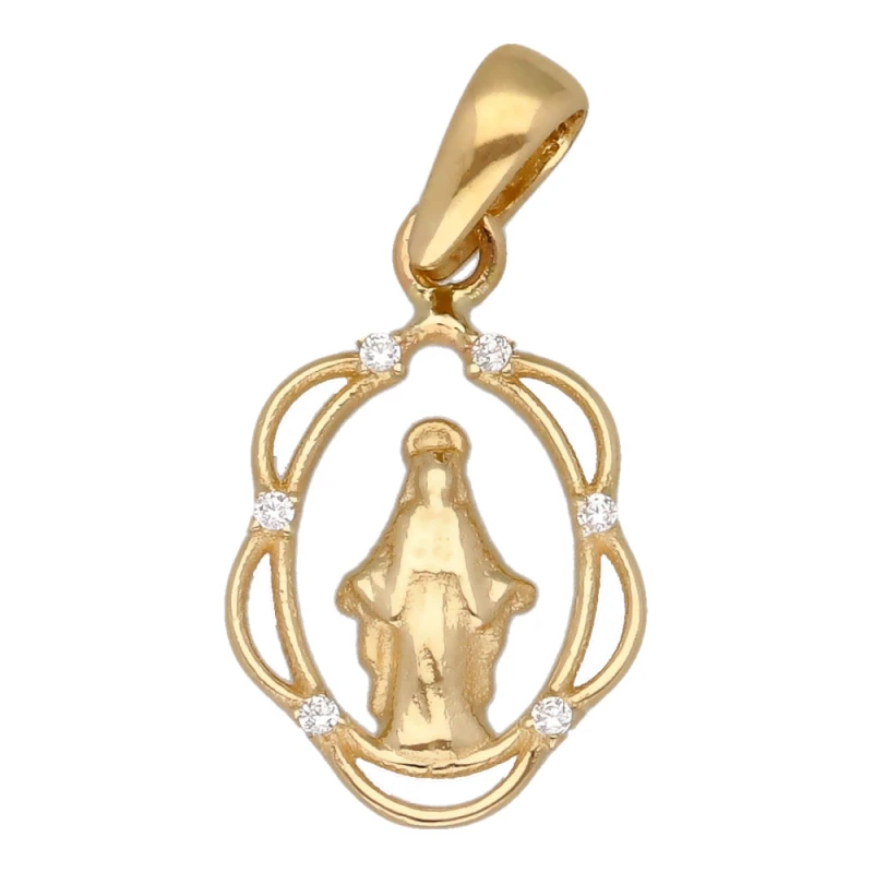 Zawieszka Złota - Medalik Matka Boska Niepokalana Biała Cyrkonia