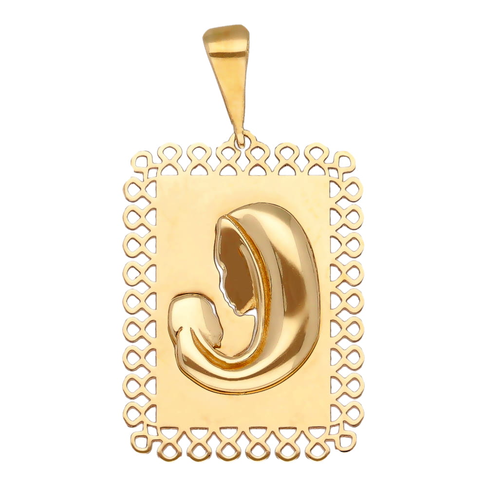 Zawieszka Złota - Medalik Matka Boska z Dzieciątkiem - Ozdobny Prostokątprot