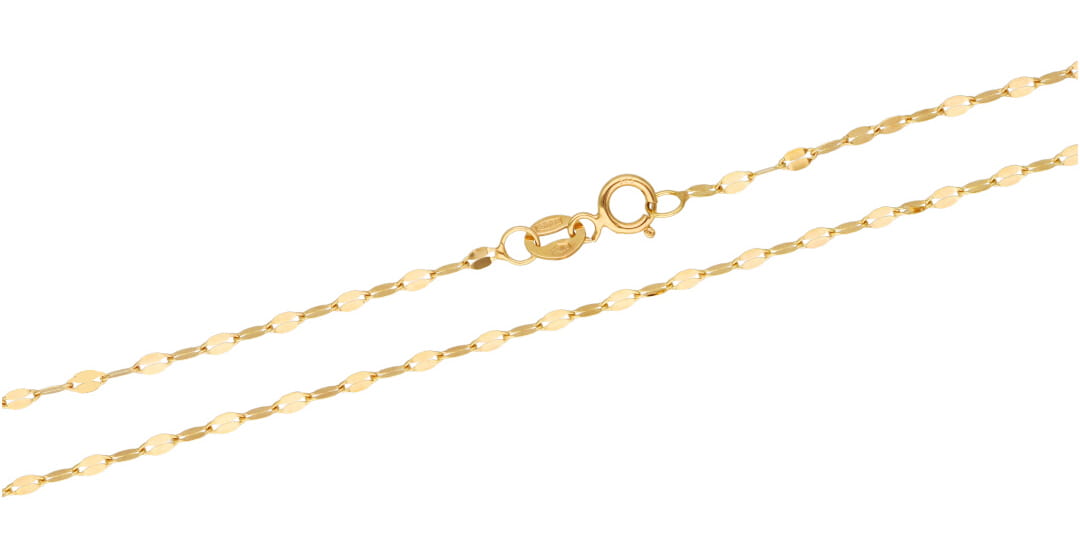 | Opis produktu | Złoty łańcuszek o splocie Fantazyjnym. Delikatny ale ozdobny - nie zalecane zawieszanie zawieszki ze względu na lekką wagę łańcuszka. Łańcuszek sam w sobie może być ozdobą na szyi. |